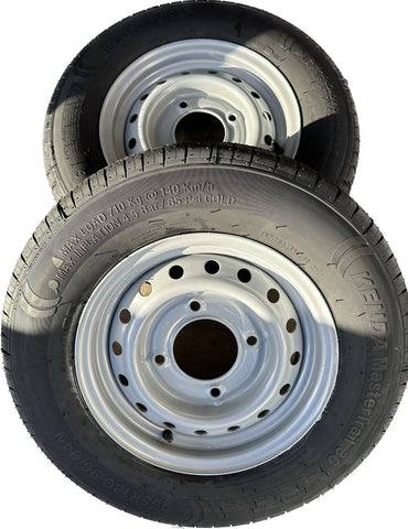 A pair of: 165R13C 96/94N Kenda fitted onto a 4 Stud, 5.5" PCD,95.5mm centre, ET25.4 wheel