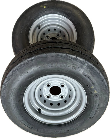 A pair of: 20.5x8.0-10 77M Deli fitted onto a 4 Stud, 100mm PCD, 60mm Centre, ET0 wheel