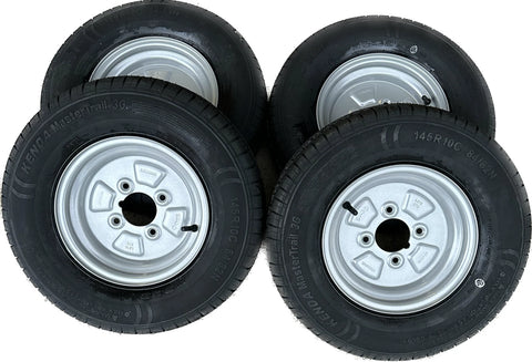 4x 145R10 84N Kenda fitted onto a 4 Stud, 4" PCD, 67mm Centre, ET0 wheel